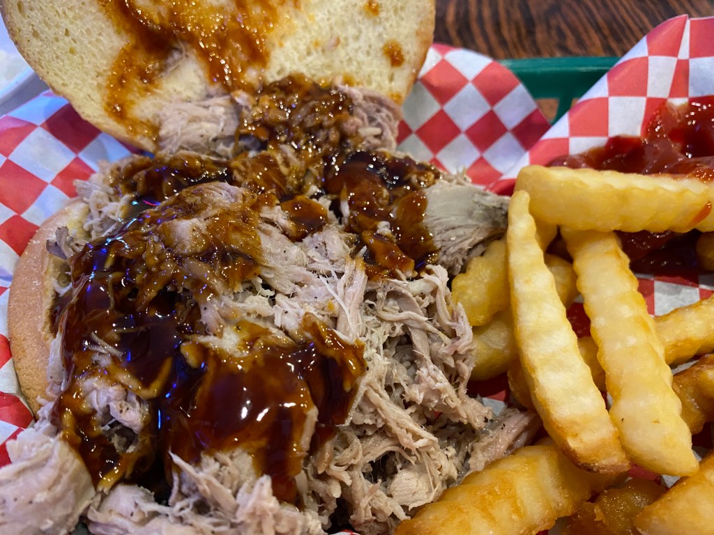 This was a really good pulled pork sandwich, especially with the bourbon and sriracha sauce.