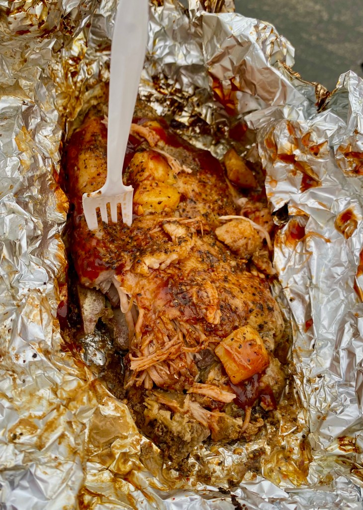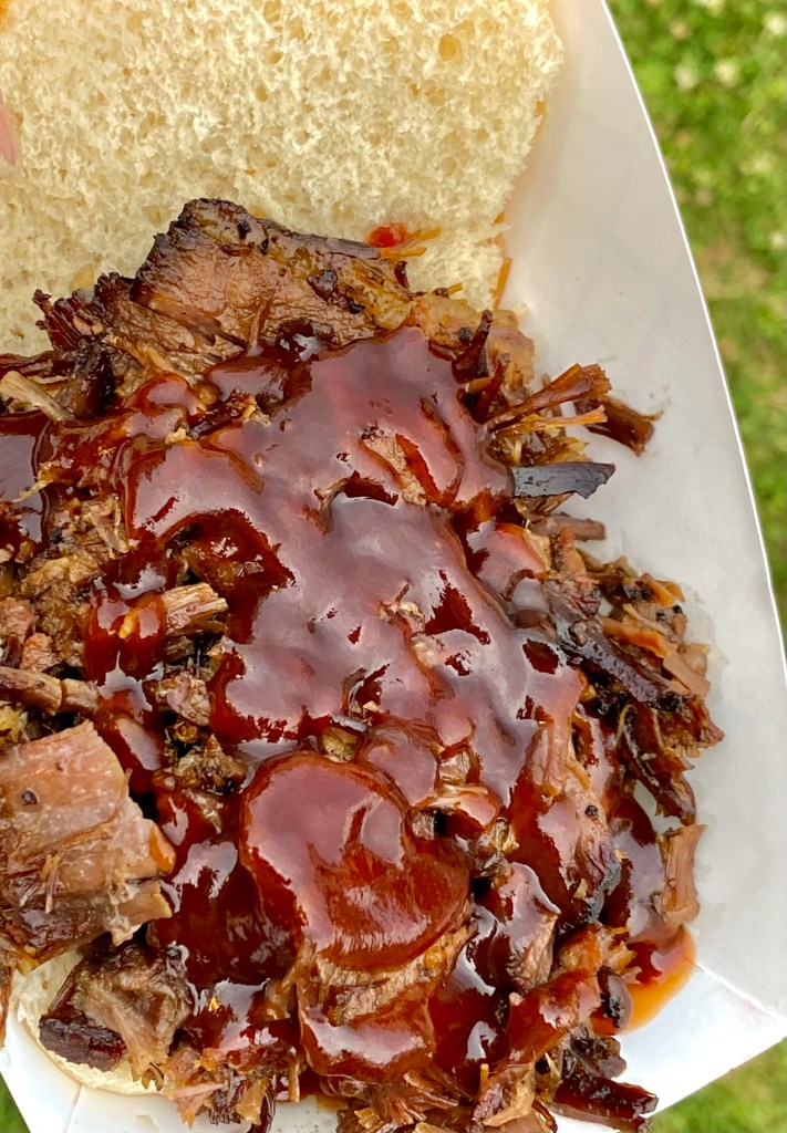 When there are two food trucks serving BBQ, it was hard to decide. So…of course I started eating one serving of rib tips from one truck while waiting in line to get a brisket sandwich from another. This was an excellent plan.