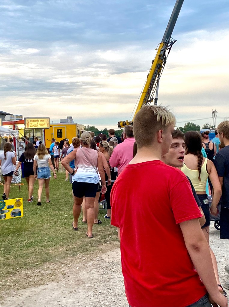 As soon as you drive into this small town in southeast Indiana you see what seems like all of the townspeople assembled out on their front yards and the rest of southeast Indiana looking for a parking spot. People dressed in the red, white, and blue are everywhere. Cars are everywhere. There are food trucks and vendors. There is a live band and a dunking booth. There is even a hot-air balloon giving rides to the extent of the length of the tether. But everyone is there for one thing…FIREWORKS!!!
