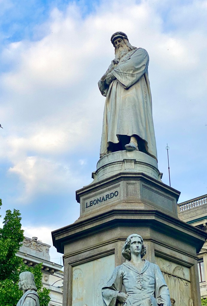 Statue of Leonardo Da Vinci near the Galleria and Duomo.