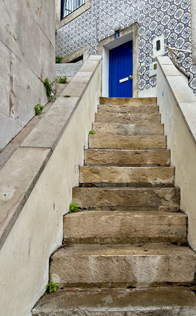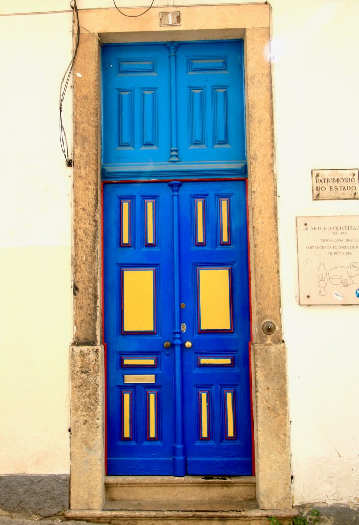 Lisbon, Portugal is a very easy city to navigate as a biped. We did it with six grandchildren, the oldest being eight. One thing that stood out for me was seeing the many colored tiles and murals imbedded in the walls of narrow streets. Also the brightly-colored doors being extra splashes of color in an already multi-hued city.