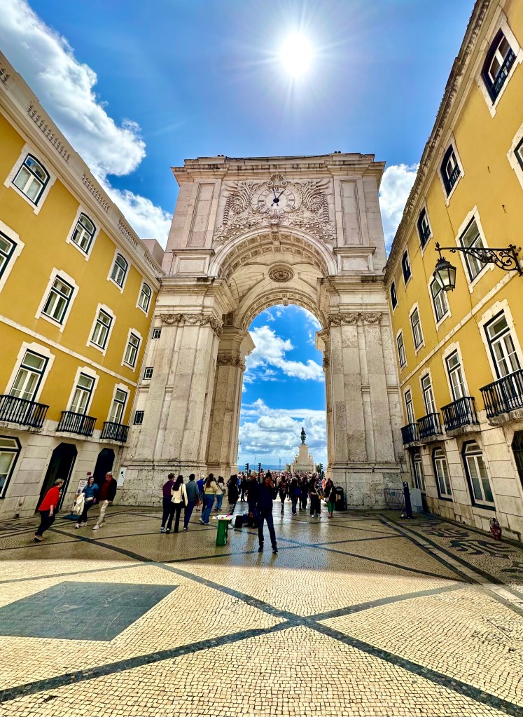 This is the Praco do Comercio. What is it about large open spaces that triggers kids to run wild, my grandkids anyway. I observed them from the top of the arch, they were easy to find, I just looked for movement.