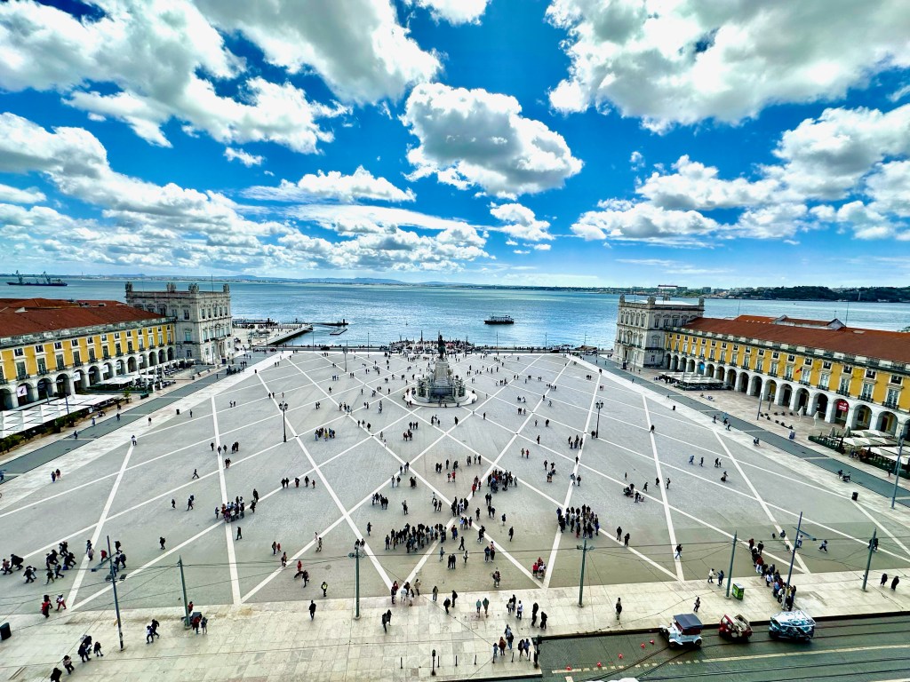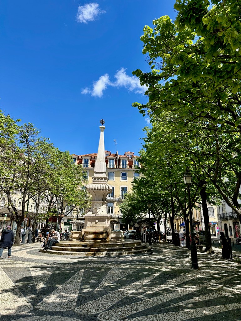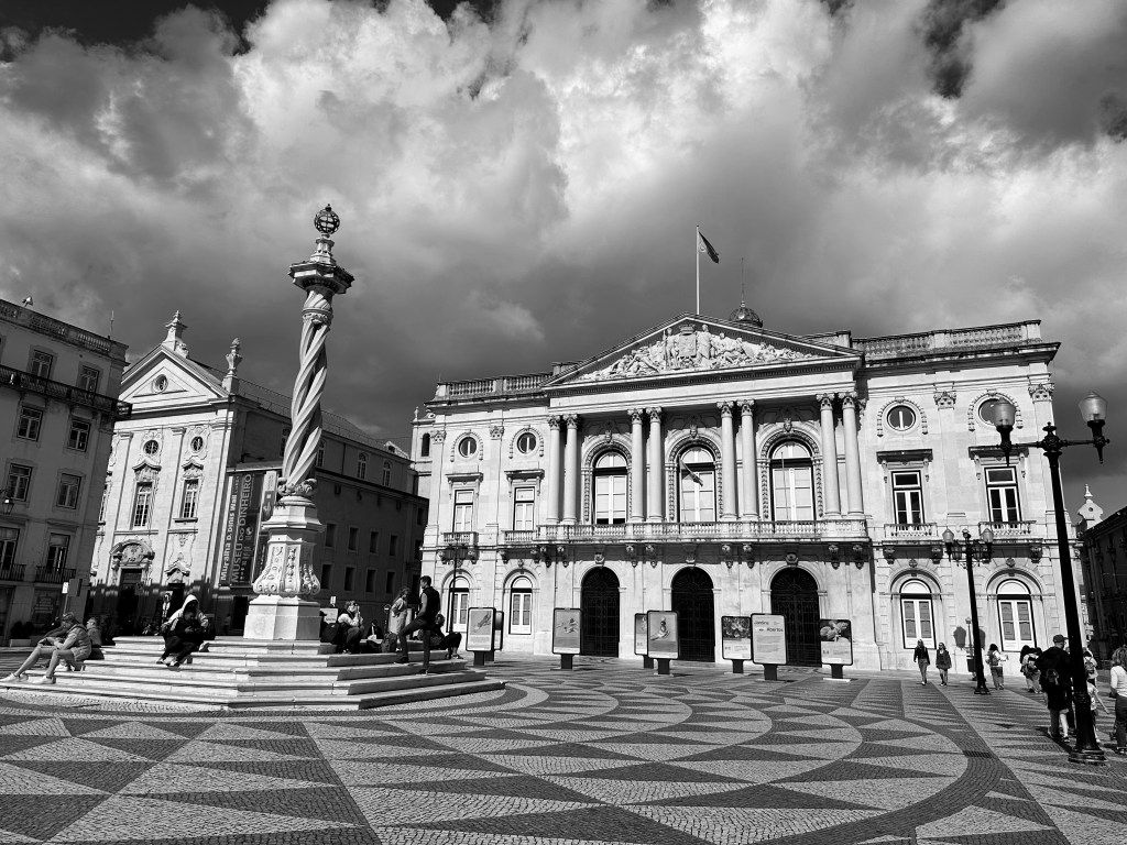 The Praca do Municipio, Lisbon’s city hall and public square with the spiral sculpture and octagonal platform make a great place to sit and watch people be annoyed by your grandchildren running amok.