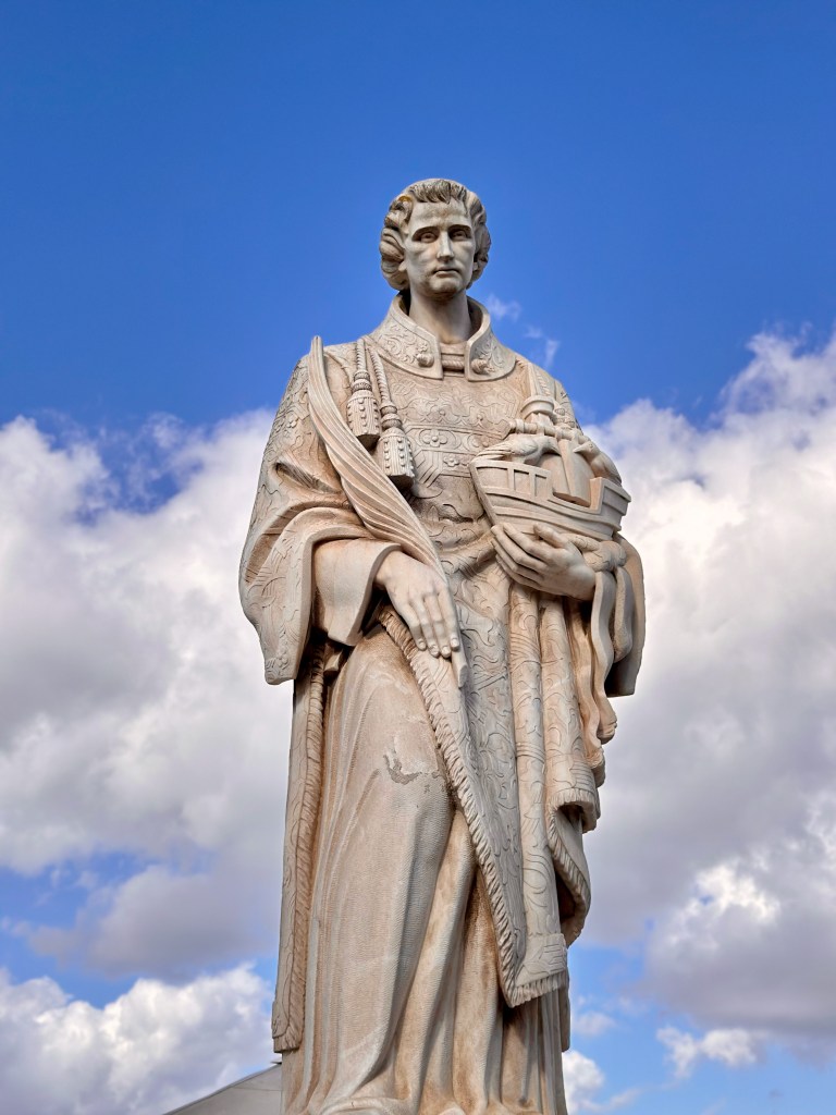 The statue of St. Vincent, the patron saint of Lisbon, is in the Alfama district on a hill near the Lisbon Cathedral.