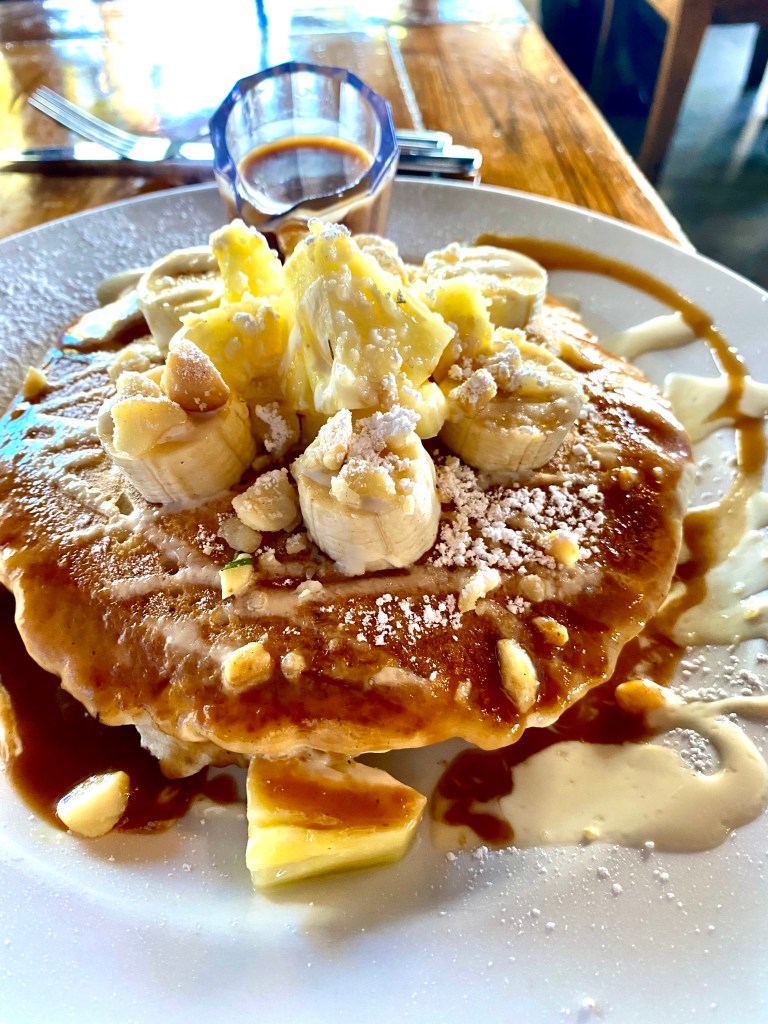 Lunch on day four was at a local favorite in Kihei, Nalu’s South Shore Grill in the Azeka shopping center. It was a good lunch menu, however Mrs. Big Surf called an audible and went for the late breakfast since she could not pass up the banana pancakes and I must say they were impressive. Big Surf on the other hand went for the raw salad to show his sensitive side.