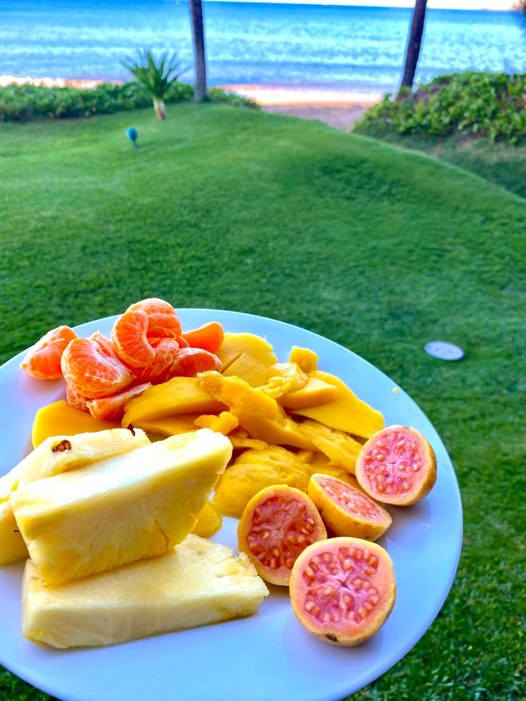 Earlier in the morning, I stopped at Maui Farmer’s Market in Kihei and picked up some fruit, pineapple jam, and great homemade guacomole.